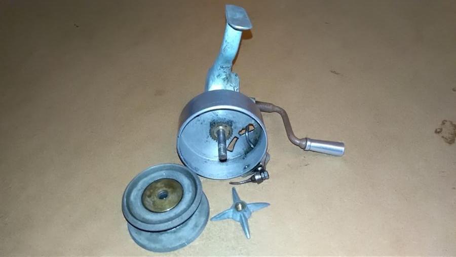 Tento smekací naviják pochází z dílny pana Vlčka, jestli se jedná o pověstný naviják Jizeran nevím. Nožku má opravovanou a klička nejspíš není původní.
