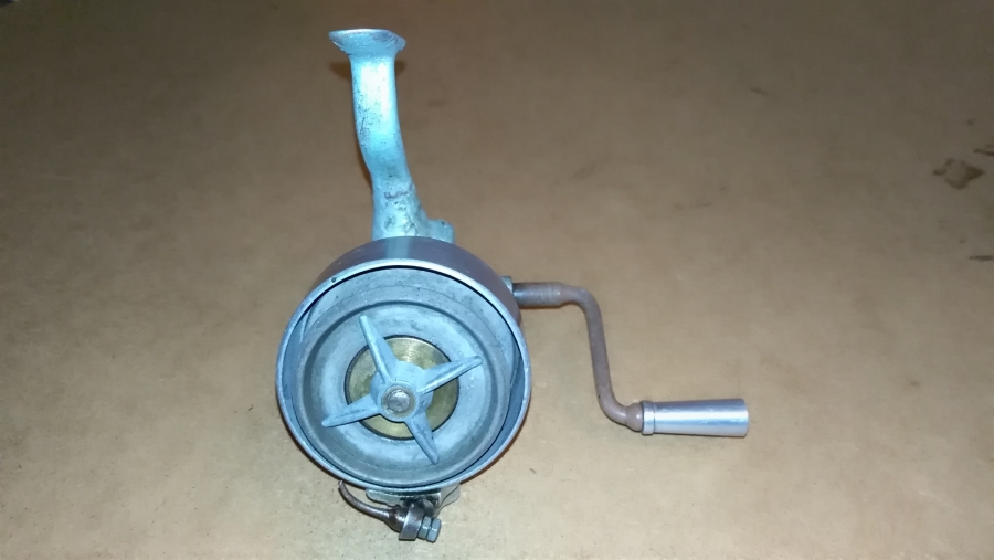 Tento smekací naviják pochází z dílny pana Vlčka, jestli se jedná o pověstný naviják Jizeran nevím. Nožku má opravovanou a klička nejspíš není původní.